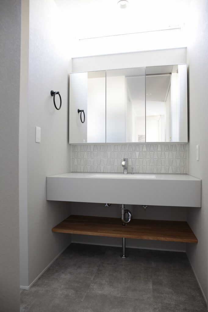 しかも、玄関ホールのすぐ横に洗面スペースと脱衣・浴室を配置してあるので、帰宅してすぐ手洗い・うがいができ、子どもが泥んこになって帰ってきた後やスポーツ後などにすぐシャワーを浴びることもできます。
